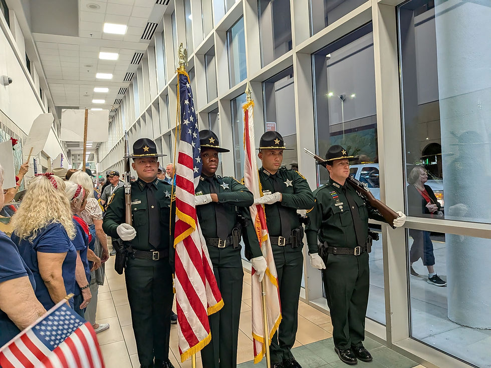 A nearly equal number of volunteer guardians, each assigned to assist a veteran throughout the day